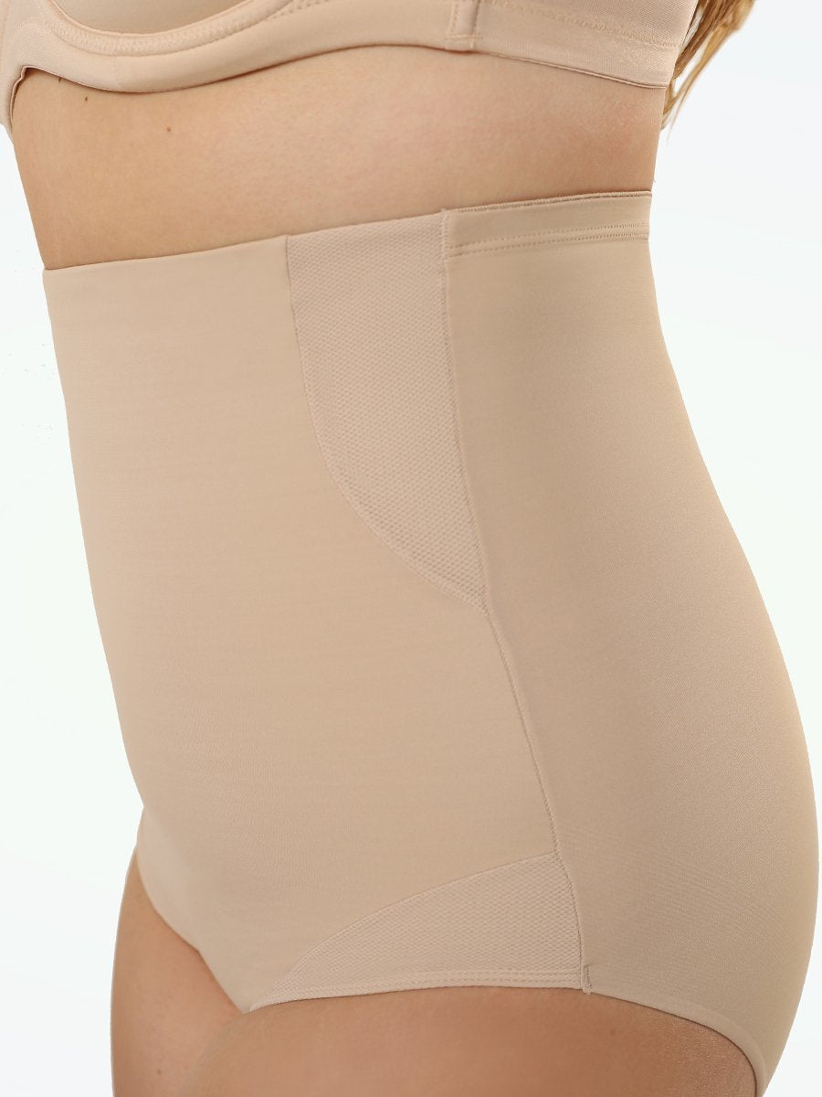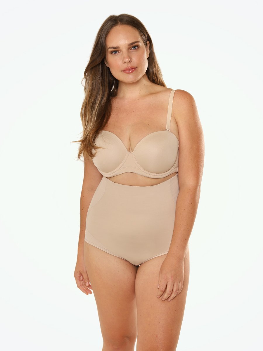 If you’re reading this, you’re part of shapewear history. This new style is a milestone that marks a new way of developing shapewear. Forget about feeling like you’re in a sauna with double-panel extra-firm control briefs. These high-waist briefs are manufactured and designed with cooling fabric so you can feel like you have nothing on and still get the perfect amount of shaping power. Mesh panels in various areas not only allow it to adapt to your body shape, but also add another level of breathability and freshness.